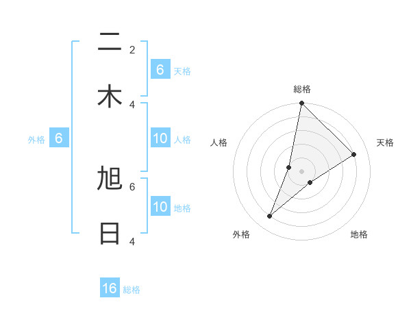二木 旭日さんの総格は16画の5点!