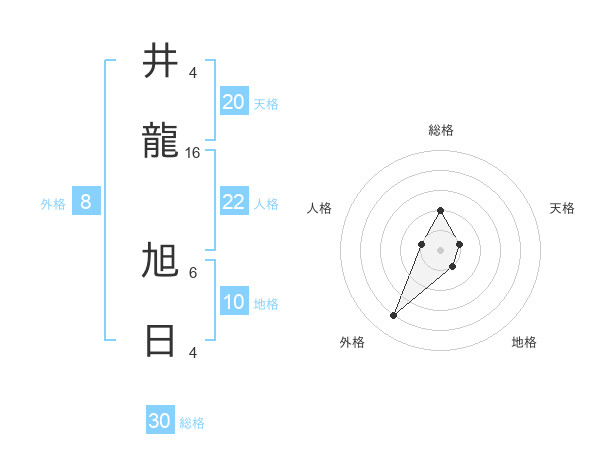 井龍 旭日さんの天格は20画の1点!