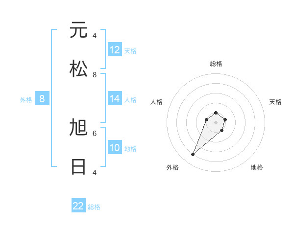 元松 旭日さんの外格は8画の4点!
