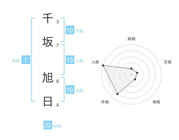 千坂 旭日さんを姓名の画数から五運を鑑定
