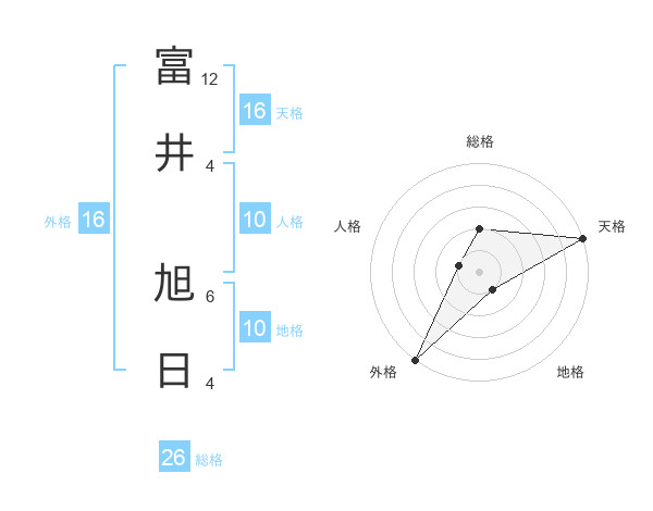 富井 旭日さんの総格は26画の2点!