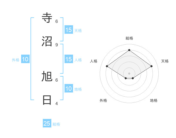 寺沼 旭日さんの総格は25画の4点!