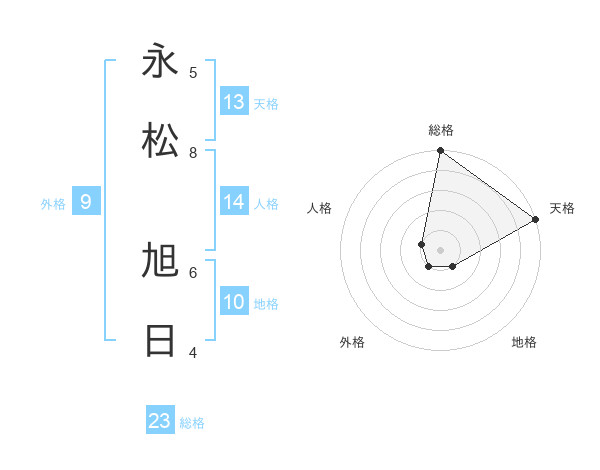 永松 旭日さんの総格は23画の5点!