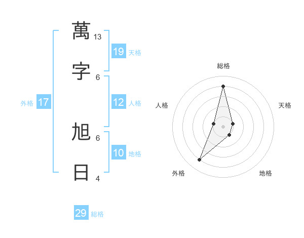 萬字 旭日さんの天格は19画の1点!