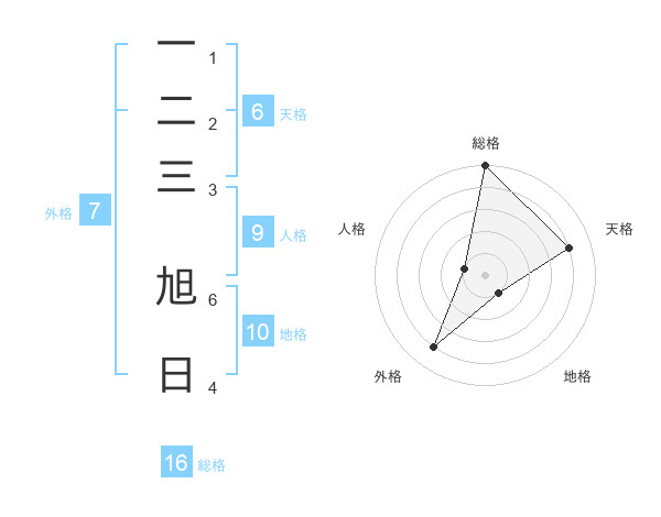 一二三 旭日さんを姓名の画数から五運を鑑定