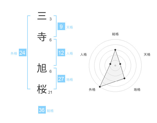 三寺 旭桜さんを姓名の画数から五運を鑑定