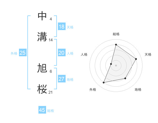 中溝 旭桜さんを姓名の画数から五運を鑑定