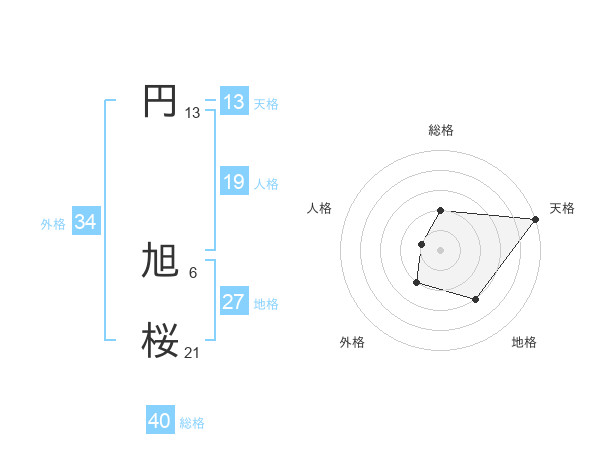 円 旭桜さんの総格は40画の2点!