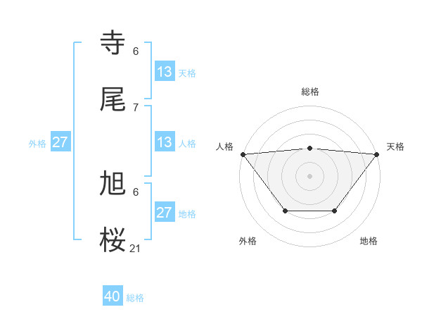 寺尾 旭桜さんの天格は13画の5点!