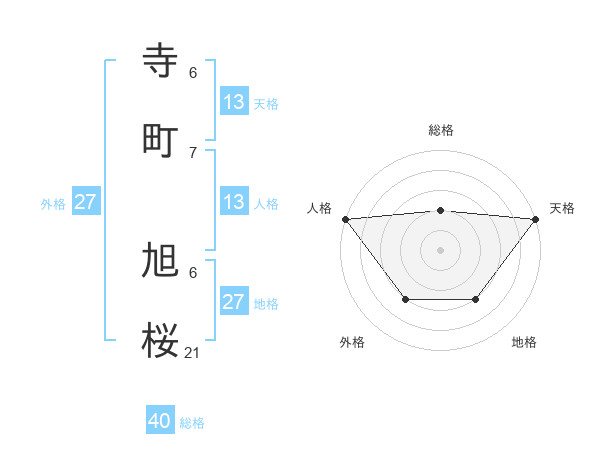 寺町 旭桜さんを姓名の画数から五運を鑑定