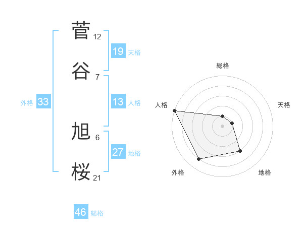 菅谷 旭桜さんを姓名の画数から五運を鑑定