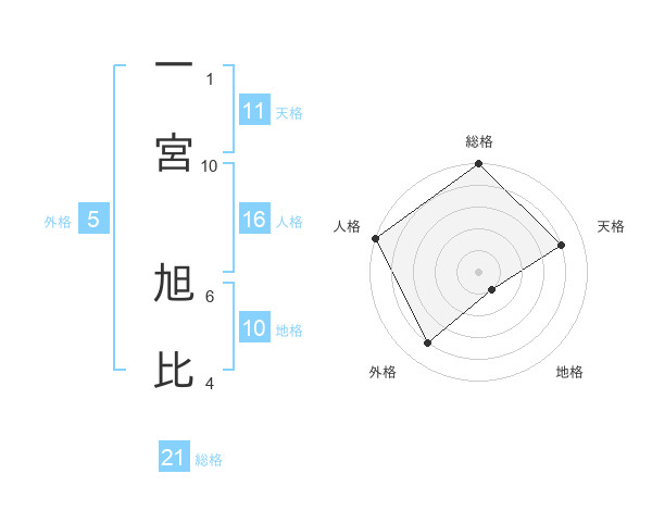 一宮 旭比さんの総格は21画の5点!