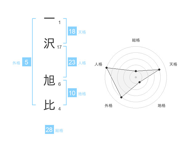 一沢 旭比さんを姓名の画数から五運を鑑定