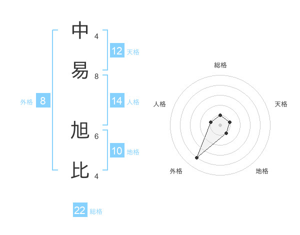 中易 旭比さんの天格は12画の1点!