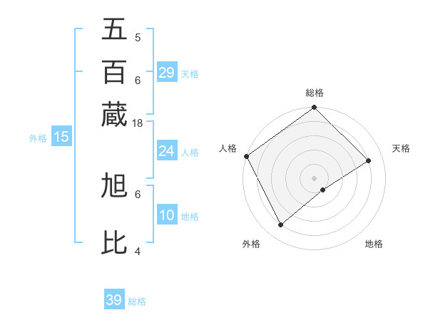 五百蔵 旭比さんを姓名の画数から五運を鑑定