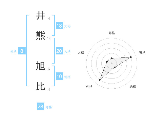 井熊 旭比さんの総格は28画の1点!
