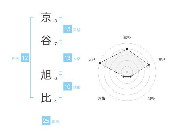 京谷 旭比さんの天格は15画の4点!