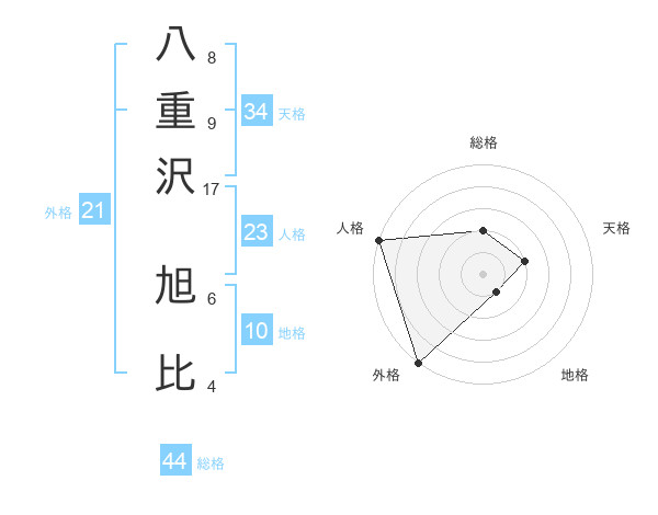 八重沢 旭比さんを姓名の画数から五運を鑑定