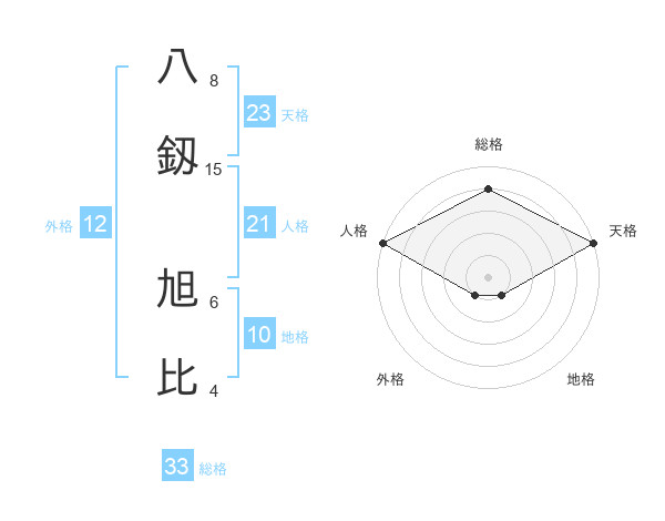 八釼 旭比さんの天格は23画の5点!