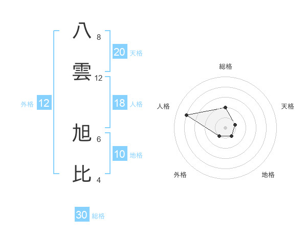 八雲 旭比さんを姓名の画数から五運を鑑定