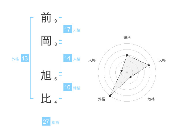 前岡 旭比さんの天格は17画の4点!