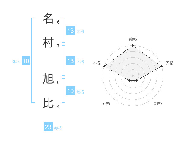 名村 旭比さんの天格は13画の5点!