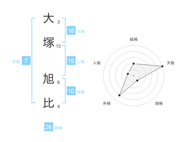 大塚 旭比さんの総格は26画の2点!