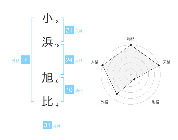 小浜 旭比さんの総格は31画の5点!