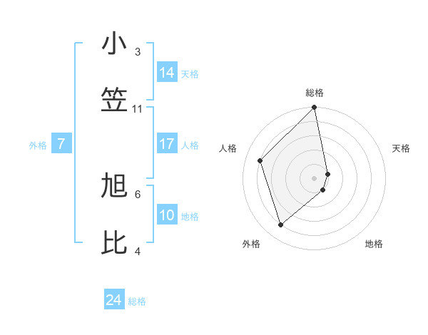 小笠 旭比さんを姓名の画数から五運を鑑定