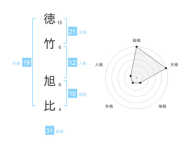 徳竹 旭比さんを姓名の画数から五運を鑑定