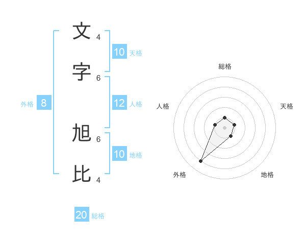 文字 旭比さんの総格は20画の1点!