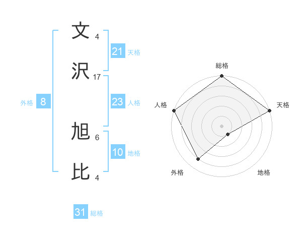 文沢 旭比さんの天格は21画の5点!