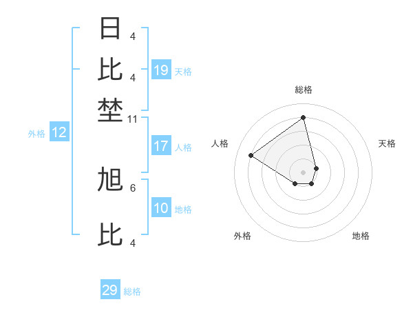 日比埜 旭比さんを姓名の画数から五運を鑑定