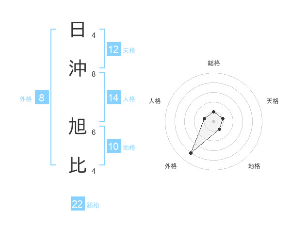 日沖 旭比さんの総格は22画の1点!