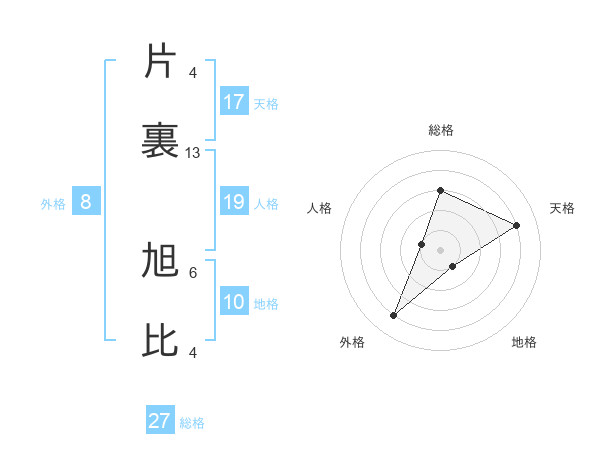 片裏 旭比さんの天格は17画の4点!