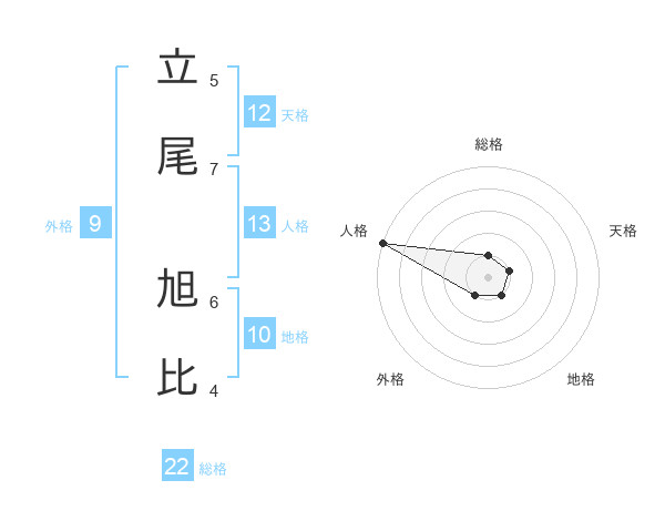 立尾 旭比さんの天格は12画の1点!