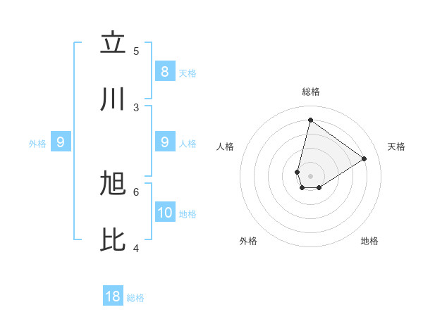 立川 旭比さんの総格は18画の4点!