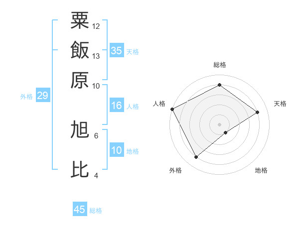 粟飯原 旭比さんの総格は45画の4点!