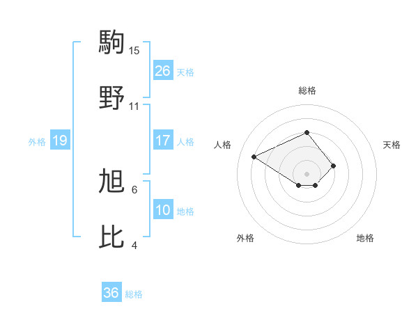 駒野 旭比さんを姓名の画数から五運を鑑定