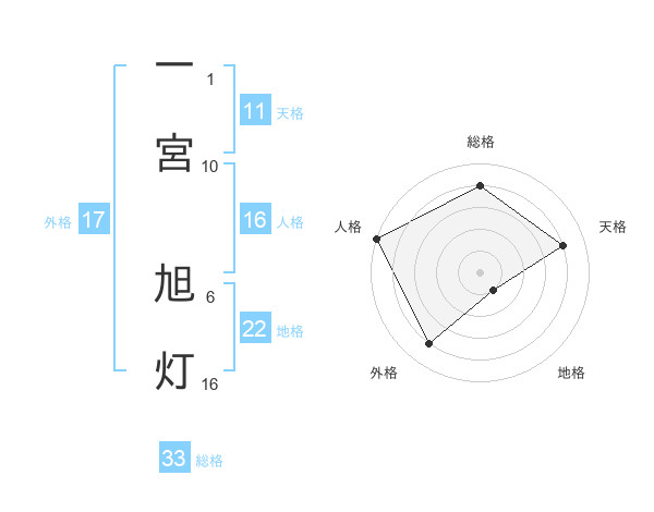 一宮 旭灯さんを姓名の画数から五運を鑑定