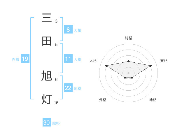 三田 旭灯さんの総格は30画の2点!