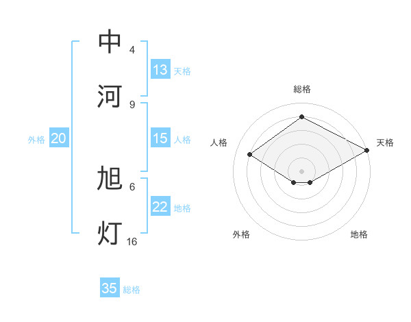 中河 旭灯さんの総格は35画の4点!