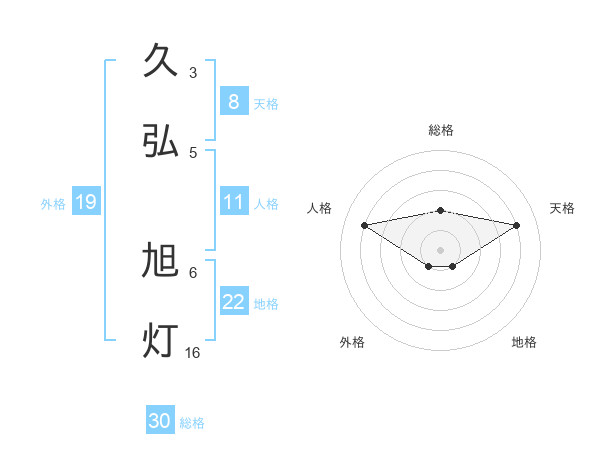 久弘 旭灯さんを姓名の画数から五運を鑑定