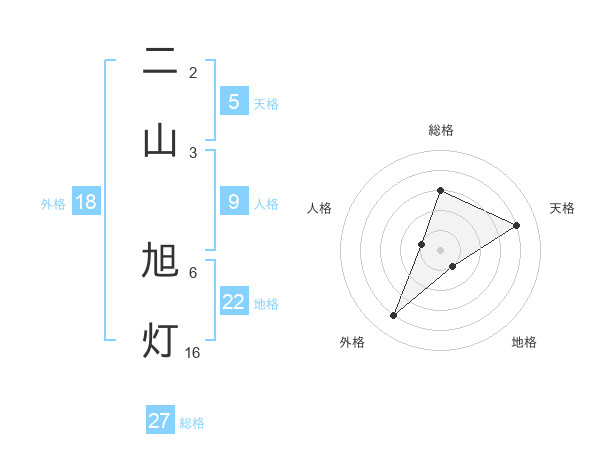 二山 旭灯さんの総格は27画の3点!