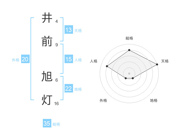 井前 旭灯さんを姓名の画数から五運を鑑定