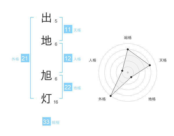 出地 旭灯さんの総格は33画の4点!