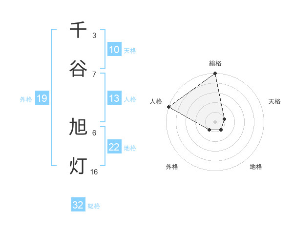 千谷 旭灯さんを姓名の画数から五運を鑑定
