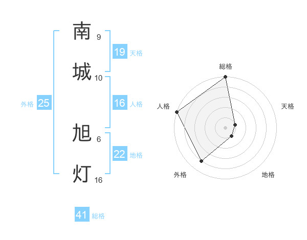 南城 旭灯さんの外格は25画の4点!