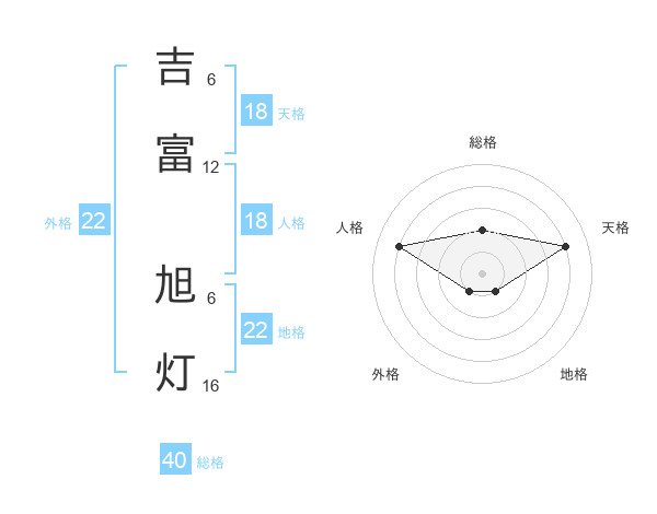 吉富 旭灯さんの総格は40画の2点!