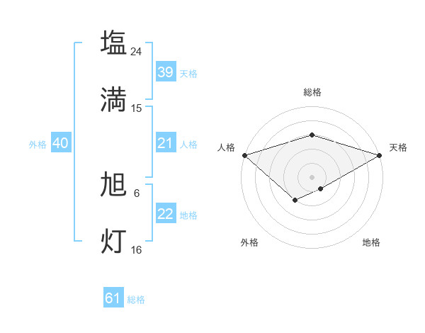 塩満 旭灯さんを姓名の画数から五運を鑑定